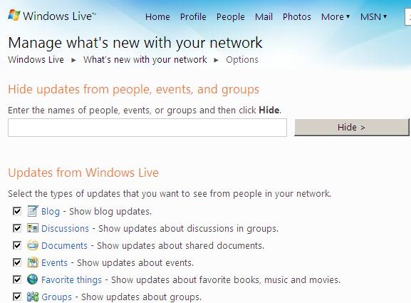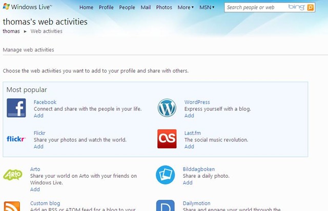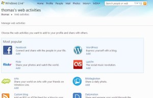 You can even import news from activities outside of your Windows Live network if you add them through the Web Activities link which appears on your http://home.live.com, or go directly to: http://profile.live.com/webactivities, as you can see in this screenshot: