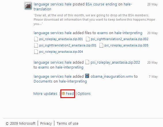 Even better, you do not have to check http://home.live.com regularly or make it your home page – you can export your What’s new RSS feed if you click on the “Feed”-link at the end of your “What’s new”section on http://home.live.com, like here: