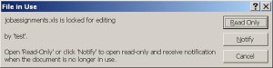 If you use regular (non-shared Excel) MS-Office Files, you may see such a warning message: