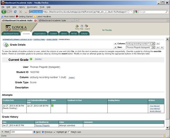 - Next in series: How the student reviews a grade Blackboard audio recording assignments: TBA