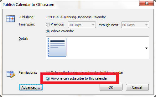 This is how we can publish the LRC drop-in tutoring schedule from MS-Exchange for viewing online: