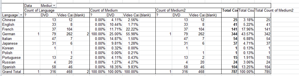 Languages & Culture Studies Film Collection: Pivot Table and Labeling System