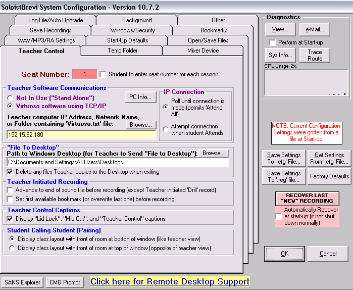 Press ctrl – shift –f10 to access the configuration dialogues. On tab: teacher control, ![]()