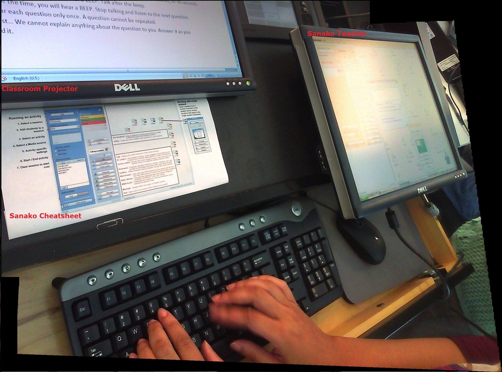 - E.g. during a recent workshop on the Sanako Study, with the Sanako feature “Teacher screen to students”, I could demonstrate live operation of the Study 1200 software on my right monitor to participants’ computer screens while being able to keep up the PowerPoint overview slide show onto the classroom screen (after setting up my PowerPoint slideshow to display on the secondary screen).