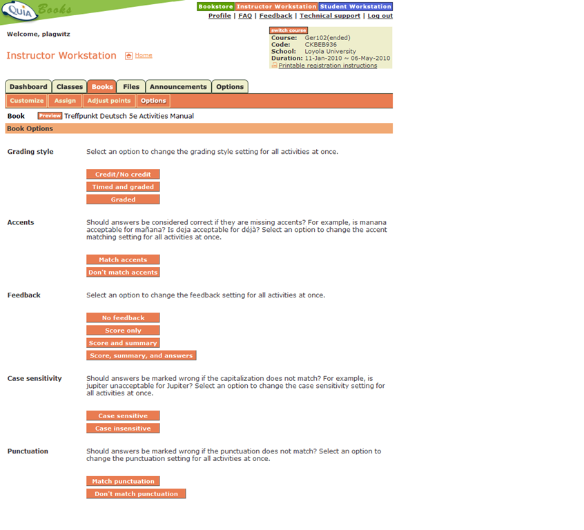 - However, when customizing your book, you may have already found the options next to each individual exercise that allow you to change Spelling/Case sensitivity