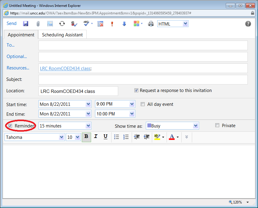 > audience-is-language-learning-center-staff, audience-is-students, e-infrastructure, service-is-library > LRC Outlook/Exchange 2010 Calendaring: What happens after the meeting request? Automated or manual responses and reminders