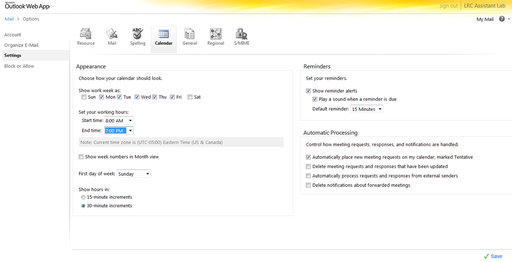 - This is maybe not as much fun as PowerShell’s Set-MailboxCalendarSettings and set-CalendarProcessing (click as you go, no batching), but easier on your MS-Exchange admin