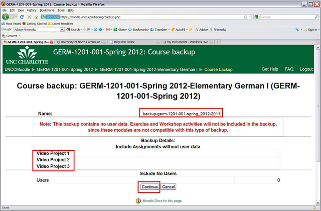 Sharing and reusing Moodle learning content using backup and restore, part I: Backup