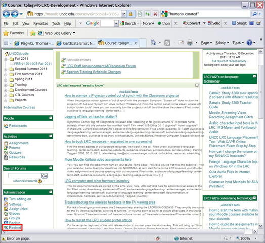 Sharing and reusing Moodle learning content using backup and restore, part II: restoring