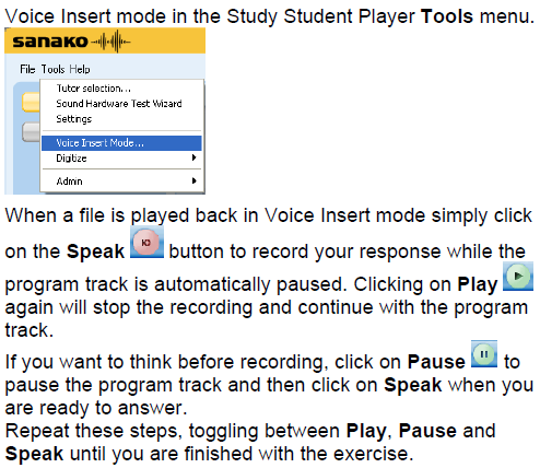 How a student uses the Sanako Recorder Voice Insert mode for Moodle comparative recording exercises