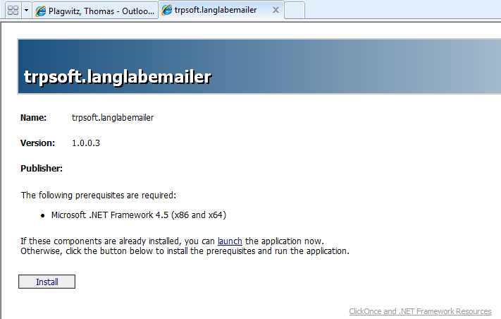 “Clickonce” to download Langlabemailer (BETA)
