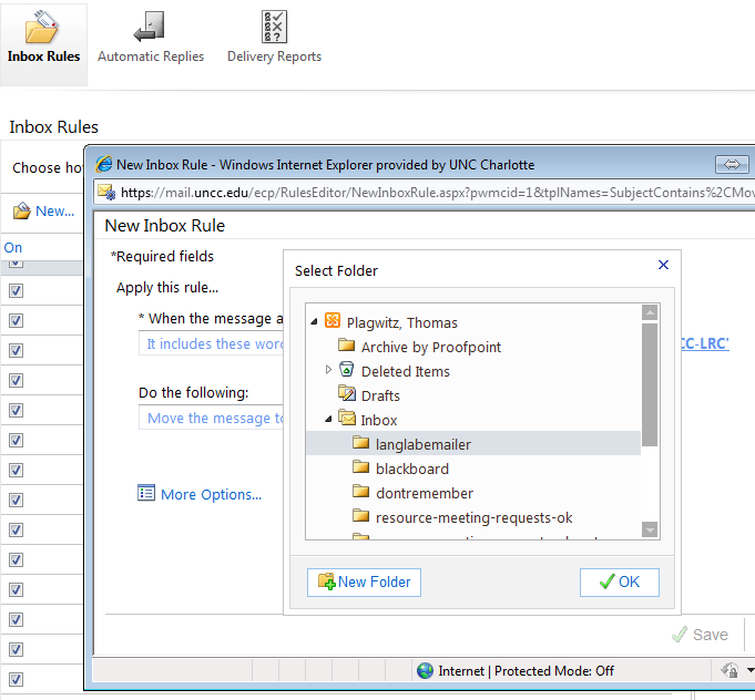 - This step-by-step GUIDE was written for filtering emails from our langlabemailer program (they happen to have “Your UNCC-LRC” in the subject) into a separate folder so that users of the LRC keep the overview: