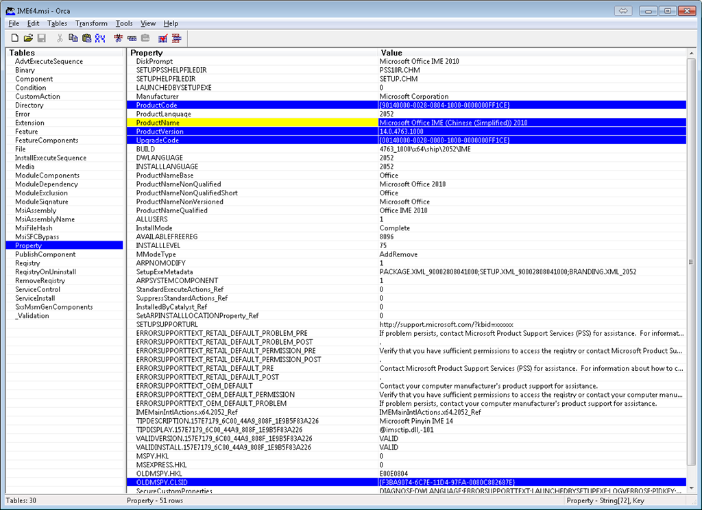 - GUID for Productcode ({90140000-0028-0804-1000-0000000FF1CE})