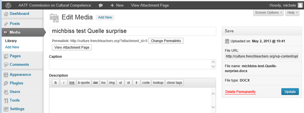 > documentation, e-infrastructure > How to upload files into WordPress and link them to articles