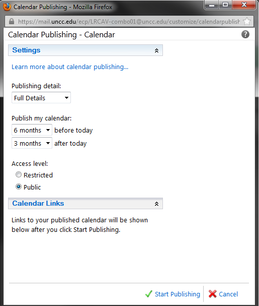 How to publish an OWA calendar to the internet