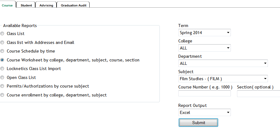 I am still in a position to get the full class list out of the system, but that is not what I need, and is not the course worksheet sheet just a calculation based on the