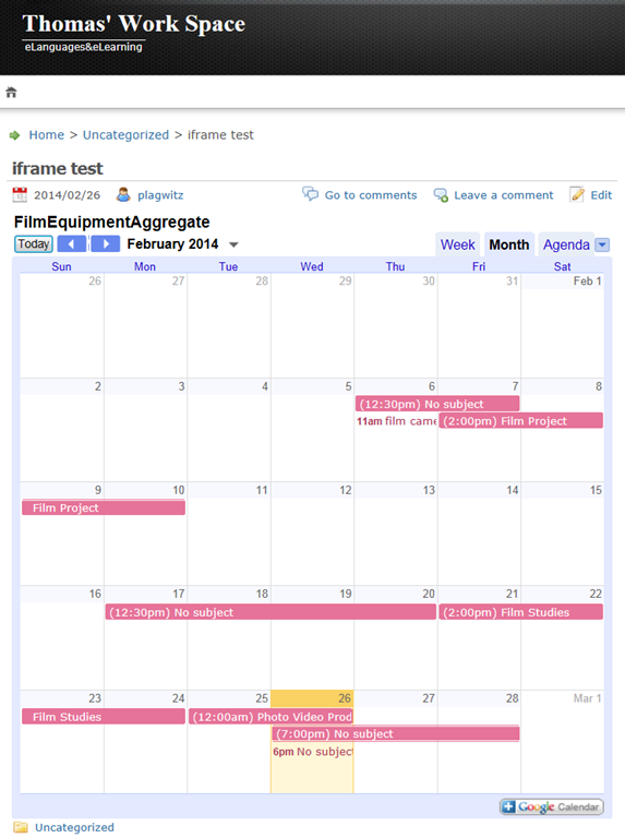 Select the “Calendars to display”: this list contains the ICS-subscriptions you added earlier.