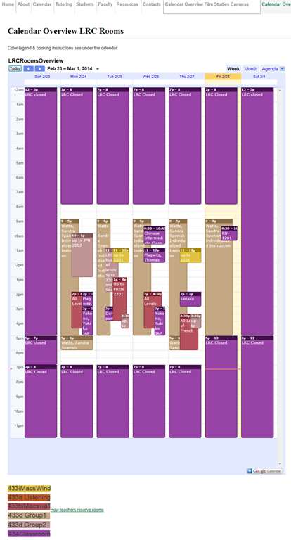 If you manage many resources that many users need to share, you will want to give them an intuitive overview of the utilization. We manage room and equipment booking in MS-Exchange 2010, but both Exchange and Outlook/OWA/Office365 are not for everyone (to set up), and seem to lack a convenient way to publish an aggregation of the iCal feeds of the individual resources that can be published.
