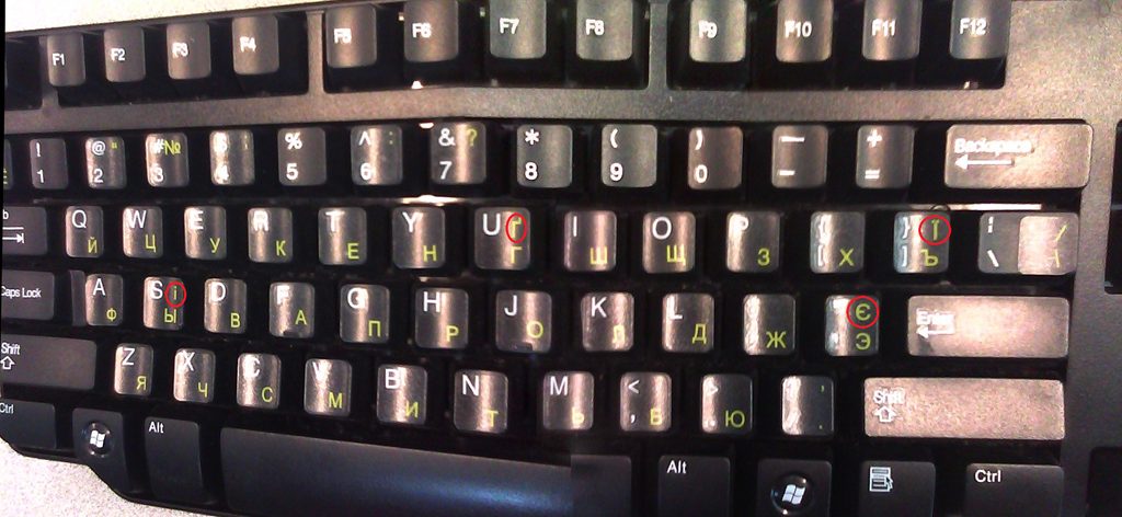 We installed the stickers, so that they reflect the software layout of the keyboard that you get when choosing the respective language from the international toolbar. Note that the letters marked in red on the Cyrillic keyboard picture below are not supported by the Russian keyboard layout: