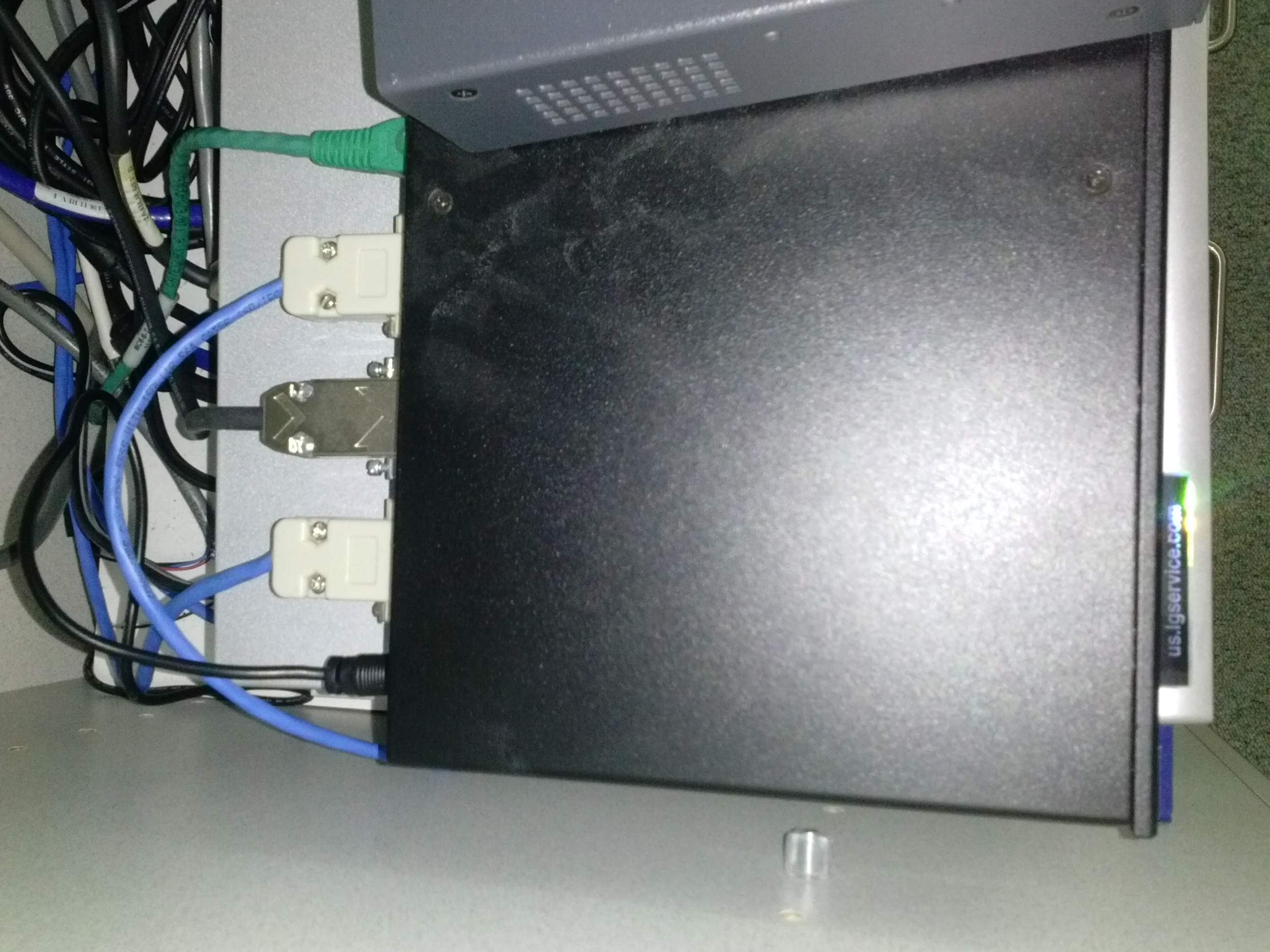 - Resolution: Open the door to the AV cabinet and powercycle the switch (= unplug and replug the lower thin black cable in the 1st or top rightmost thin black cable in the 2nd photo). Or use the call button (still functional) and wait for help.