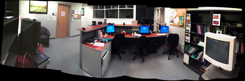 - The group rooms are merely my personal “hack” to make the LRC fit the changing departmental needs better. Our renovation proposal asked for more standard facilities, but we could secure only a couple of man hours to move our existing furniture. The hacked group rooms are small (photo included here), not (unlike proposed) sound proof and that the area in front of the reception desk with 3 customer lines can get rather busy when assistants help students, faculty and tutors. The LRC help desk constantly has students and teachers asking for help and checking out equipment, media, and starting proctored quizzes, sometimes in lines.