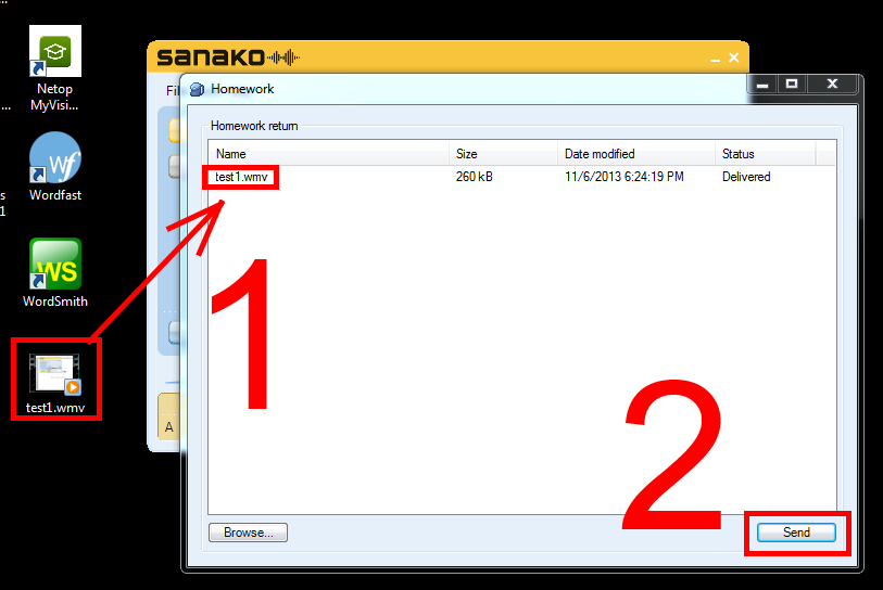 - If your teacher wants you to submit your recording, in the LRC you can drop it into the Sanako Homework window and “send” it: