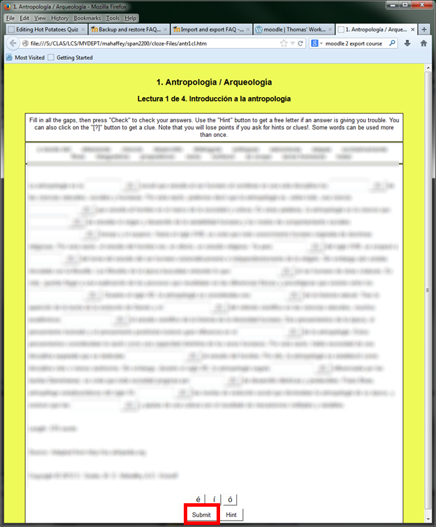 - The Hot Potatoes quiz activity per se does not seem to have a submit button, since it is auto-grading, per question.