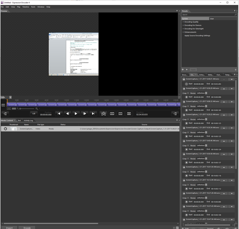 - Expression Encoder will add all to the timeline in sequence, and encode all to one output file: