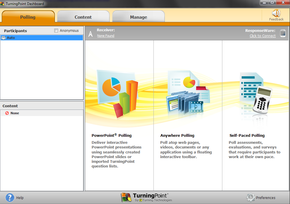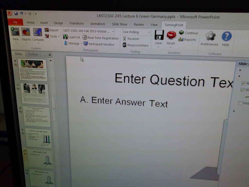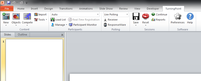 After the install, when you open ppt (from the “Turningpoint dashboard”: “PowerPoint Polling”),