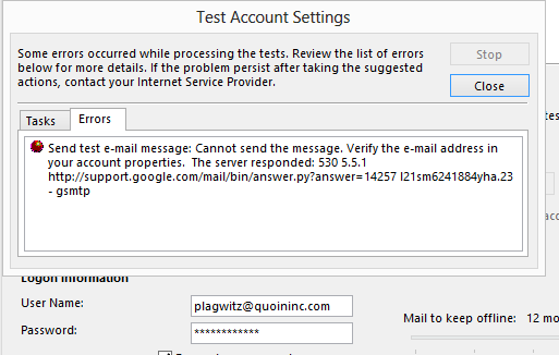 Yet another couple of glitches solved in setting up Outlook 2013 with Gmail IMAP for GoogleApps