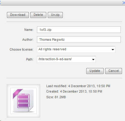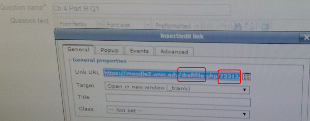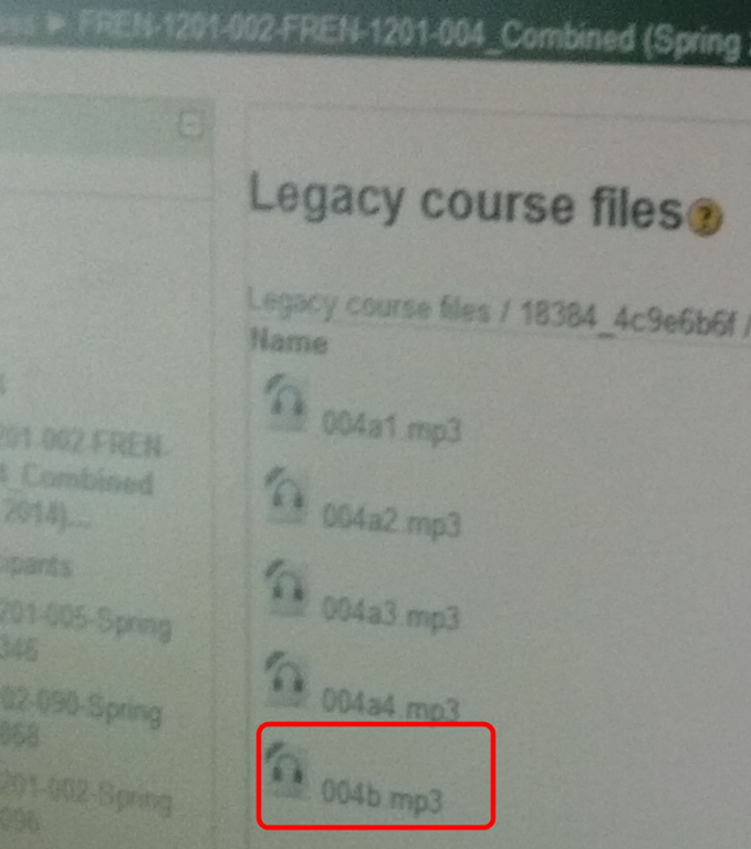 - Go to in Moodle course / Files section, locate the offending file (you can use the unique id you put in the clip board to search), i.e. make sure it actually exists: