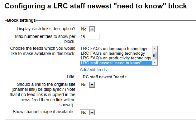 - Doh. I and the (I find: clumsy) way RSS-feeds have to be configured in Moodle meet again: You RSS feed list may be correct, but then you also need to select the right feed to display.