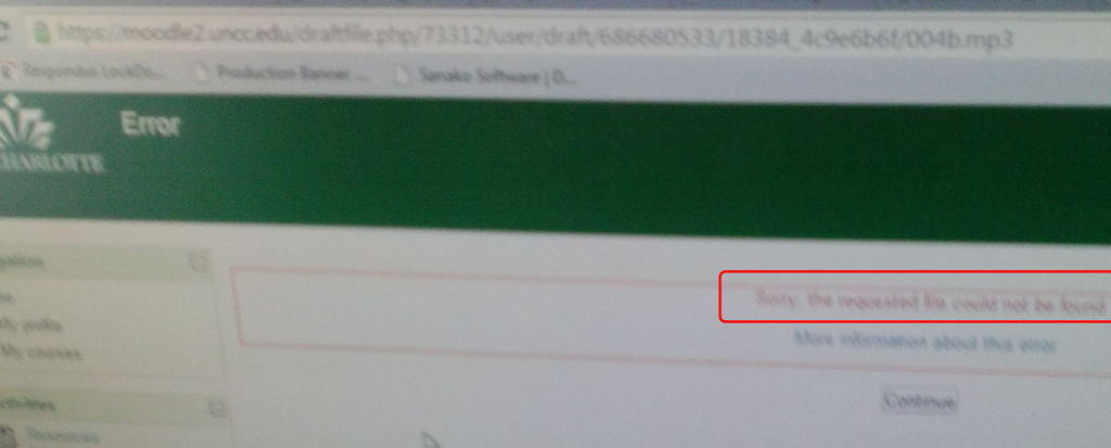- LRC assistants may get called by students with this error regarding pluginfile.php in a Moodle quiz, it appears in the audio player interface itself and looks like this: