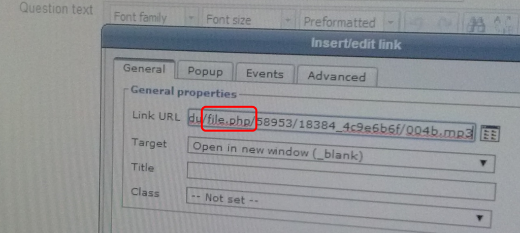 Audio player error message involving “pluginfile.php” in Moodle quiz