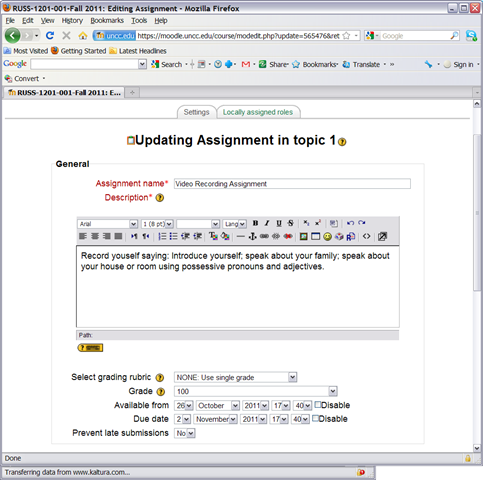 How a teacher creates and grades a Moodle streaming video assignment.