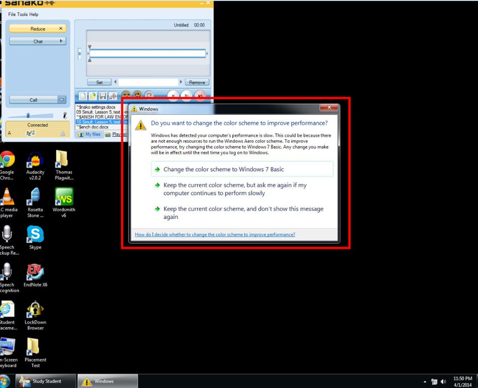 - Disruption is the least of the problem: The warning comes up when computers become dangerously slow. In the past, they have become disfunctional during these episodues and needed to be power-cycled. This has resulted in loss of assignment and assessment materials.