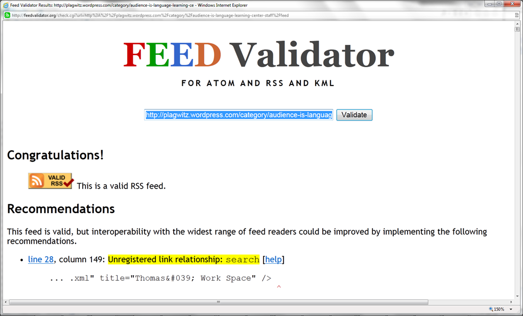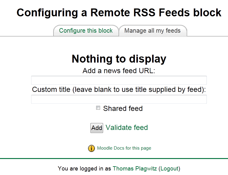 - Validate your feed so that Moodle doe not outright refuse to display (the linked validator will give you error information that can help you fix your feed).