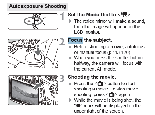 Here are the most relevant pages for movie shooting from the manual/quick which can be downloaded from the products page: