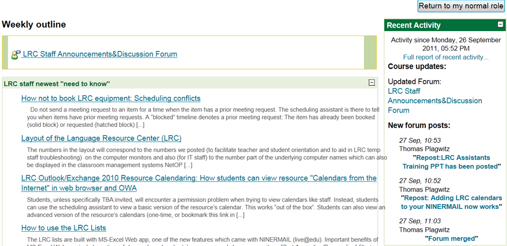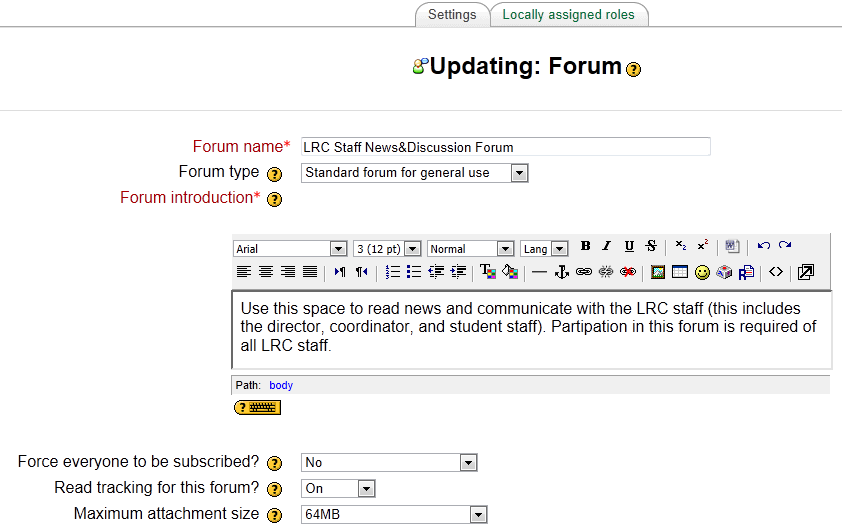 - If you try to use the Moodle forum as a mailing list and/or real-time messaging system (like we do with the LRC Moodle as groupware for LRC staff), checking “Mail now” is recommended.