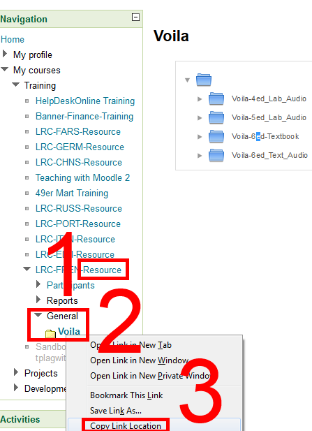 The CTL has arranged for all [your language here, e.g. French] Moodle courses to automatically become “child courses” (don’t get hung up on that terminology!) of the “LRC-[your language here]-Resource” Moodle course (AKA “parent course”) course at the beginning of each term. That means: all teachers and students in [your language here] courses will have access to the learning materials in “LRC-[your language here]-Resource” course. (At the end of the term, all teachers and students will be automatically un-enrolled also).
