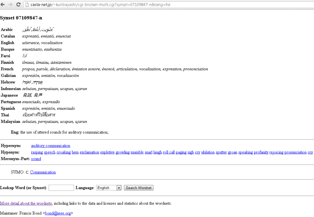 Covers a subset of the languages supported by the LRC. Based on Wordnet which is rather than a dictionary for human consumption, a machine-readable semantic network, but here is one of its machine-generated applications.