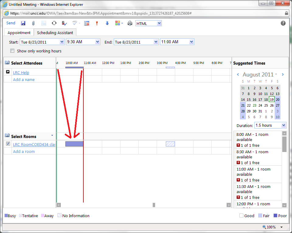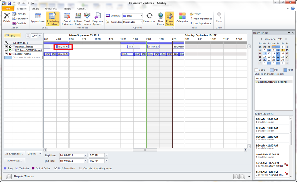 LRC Outlook/Exchange 2010 Resource Calendaring: How to use the Scheduling Assistant in OWA