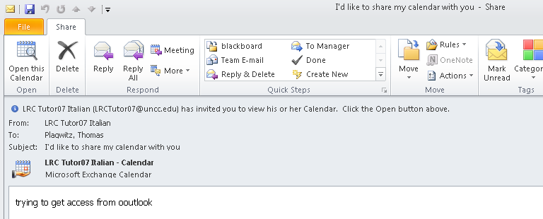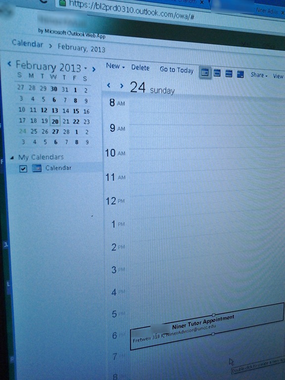 - You do not even need to visit the LRC home page: you have privileged access to the the LRC hours end events calendar from your NINERMAIL, if you subscribe to it there (shortcut: start @ #3 armed with this link:http://mail.uncc.edu/owa/calendar/LRCRoomCOED434@uncc.edu/Calendar/calendar.ics).