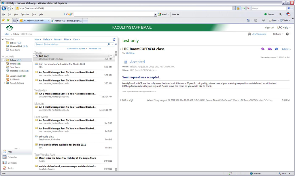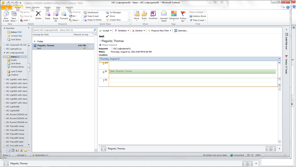 LRC Outlook/Exchange 2010 Resource Calendaring: How to book an LRC resource by making a Meeting Request in OWA