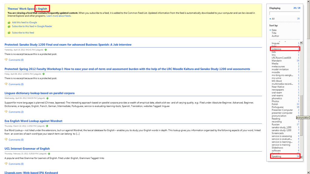 - The capability of RSS-news feed integration of foreign language news may be standard now in most LMS, but was not in 2002 (not even having an LMS was standard, I had to build my own while it took the university a few more years to adopt Blackboard as I had recommended in 2000):