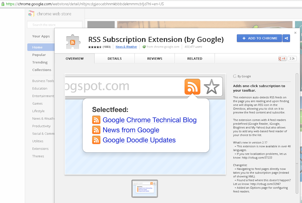 … if you install this extension made by Google themselves (who, I think, should include this RSS feed display extension in the default Chrome distribution):