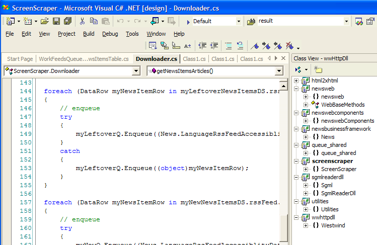 - At a recent Digital Humanities Unconference, I was asked how I had “scraped” (RSS-scraping was chosen since it easier than screen scraping, for RSS is devoid of most markup, as long as it validates) into a SQL-server database. Here are some code-snippets to get you