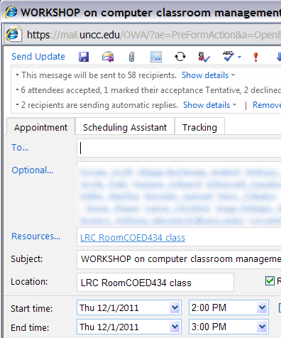 LRC Outlook/Exchange 2010 Resource Calendaring: How to use the Scheduling Assistant in OWA