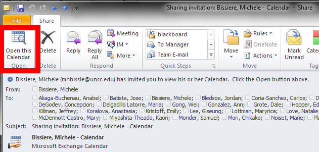 If you receive a calendar sharing invitation, click “Open the calendar”