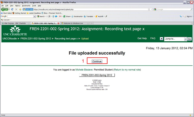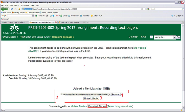 However, students can upload their results to Moodle, provided their teacher has created a single file upload assignment. We have tested this to work in our Moodle installation with video files to 64MB, which is more than 20 minutes of simple “talking head” footage recorded in the LRC (@320*240, 15fps resolution WMV, captured with Windows Moviemaker on Windows XP).